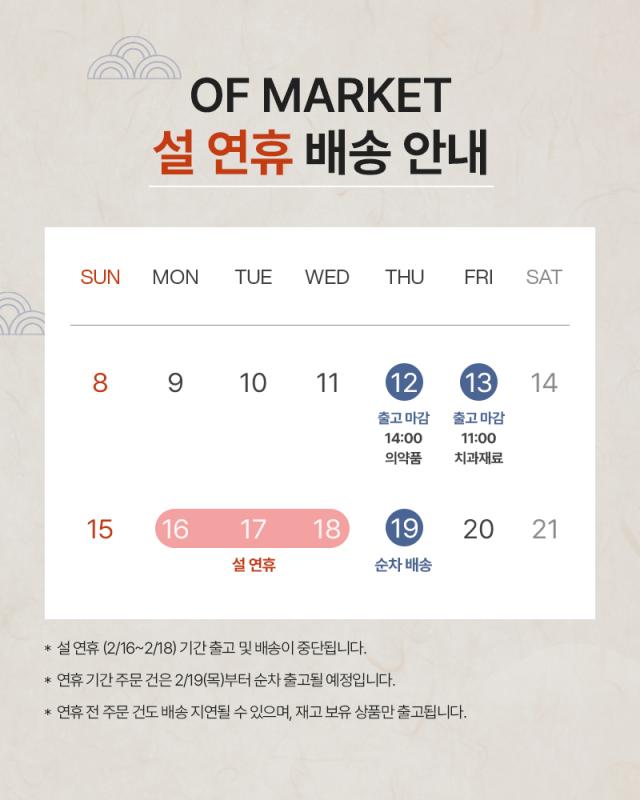 🧧오브마켓 설 연휴 배송안내🧧